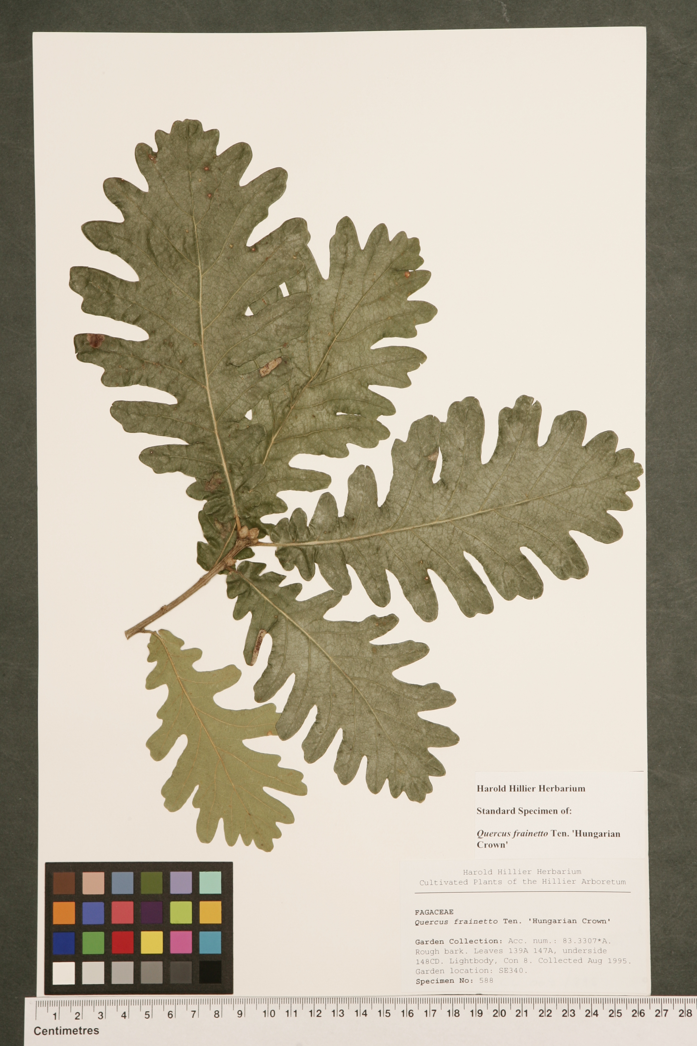 Quercus frainetto 'Hungarian Crown' Coombes, in Hilliers' Man. Trees & Shrubs Ed. 6., 348 (1991)
