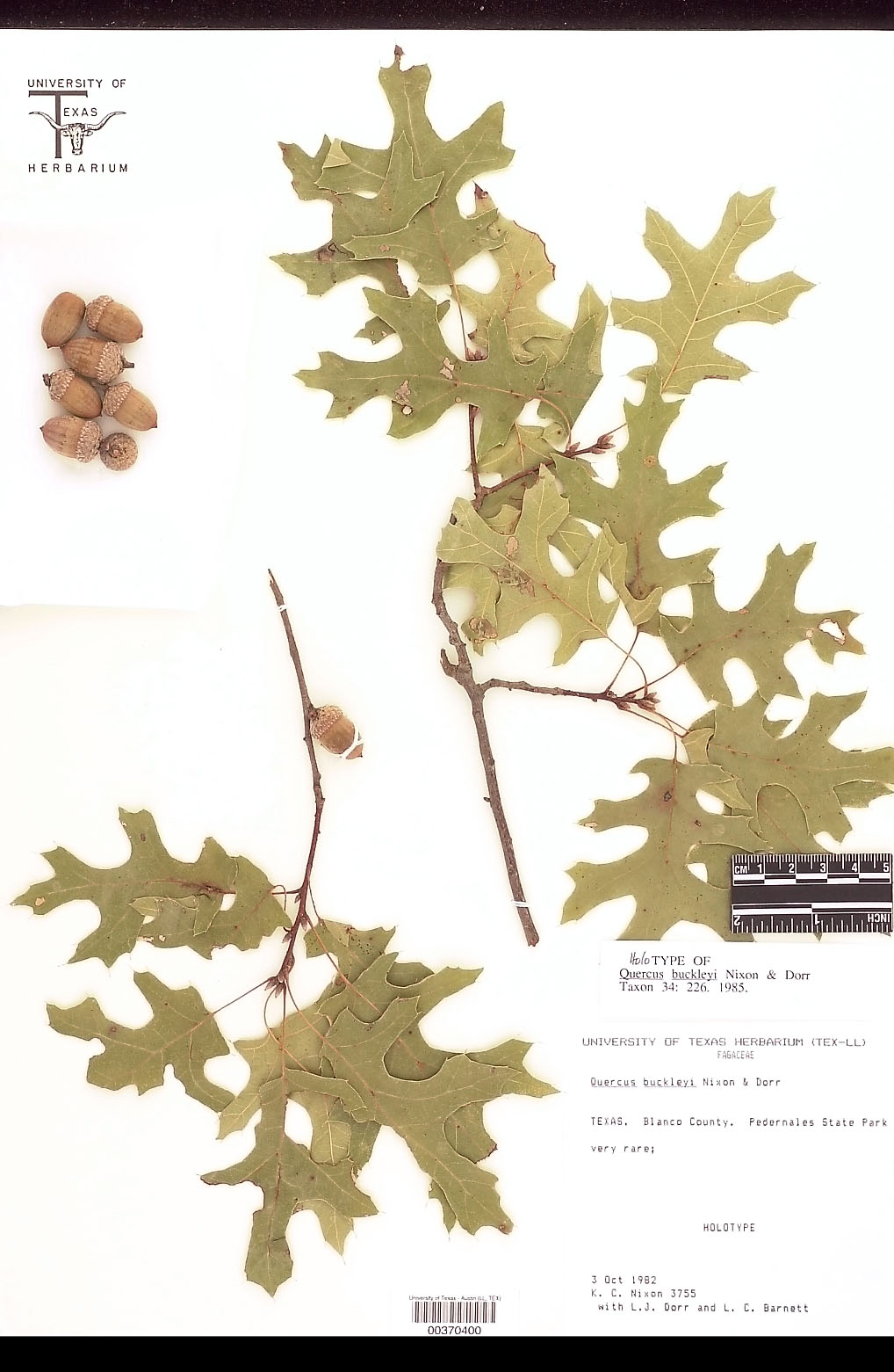 Quercus buckleyi Nixon & Dorr, Typification of the oak (Quercus) taxa described by S.B. Buckley (1809-84). Taxon 34(2): 225–226, f. 7–8. (1985) is an accepted name.